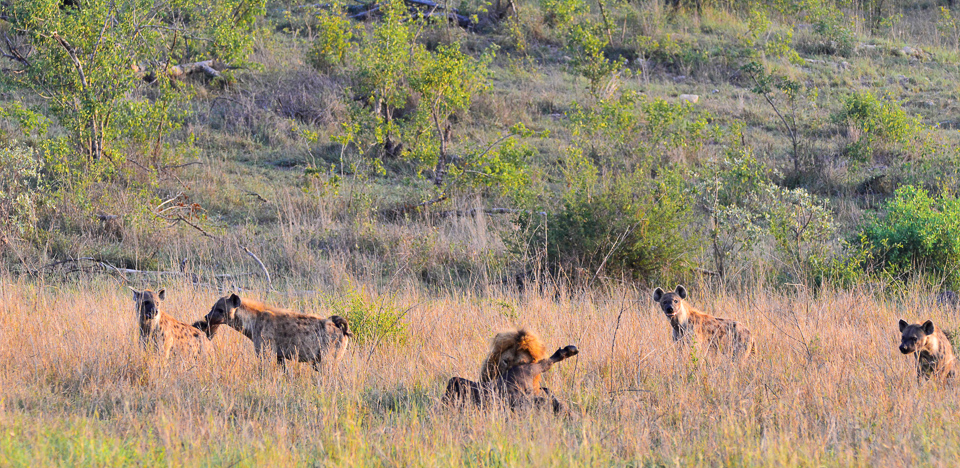 He was surrounded by hyenas who were harassing him!