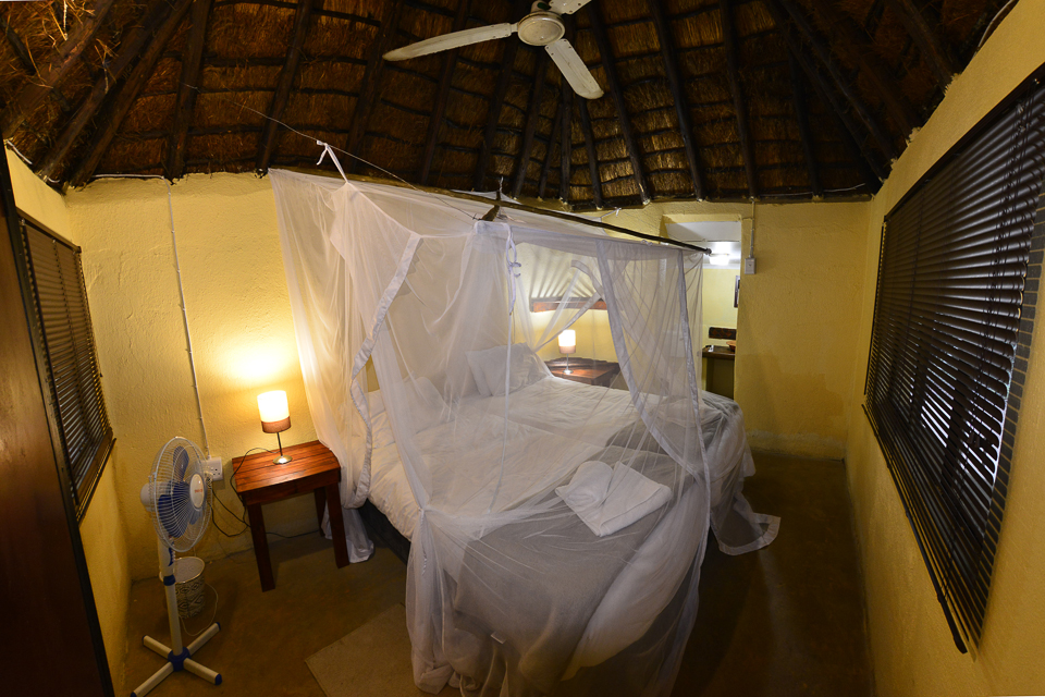 Main camp has 16 thatched chalets / huts with twin beds, en-suite bathroom - shower, toilet & basin and mosquito nets. Neat foot-lit pathways lead to each room, which is surrounded by bush.