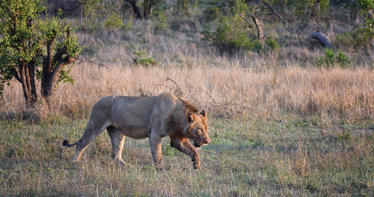 Vultures are sometimes a sign that there are predators nearby so we sat for a few minutes and then we spotted a lion walking through the bush.