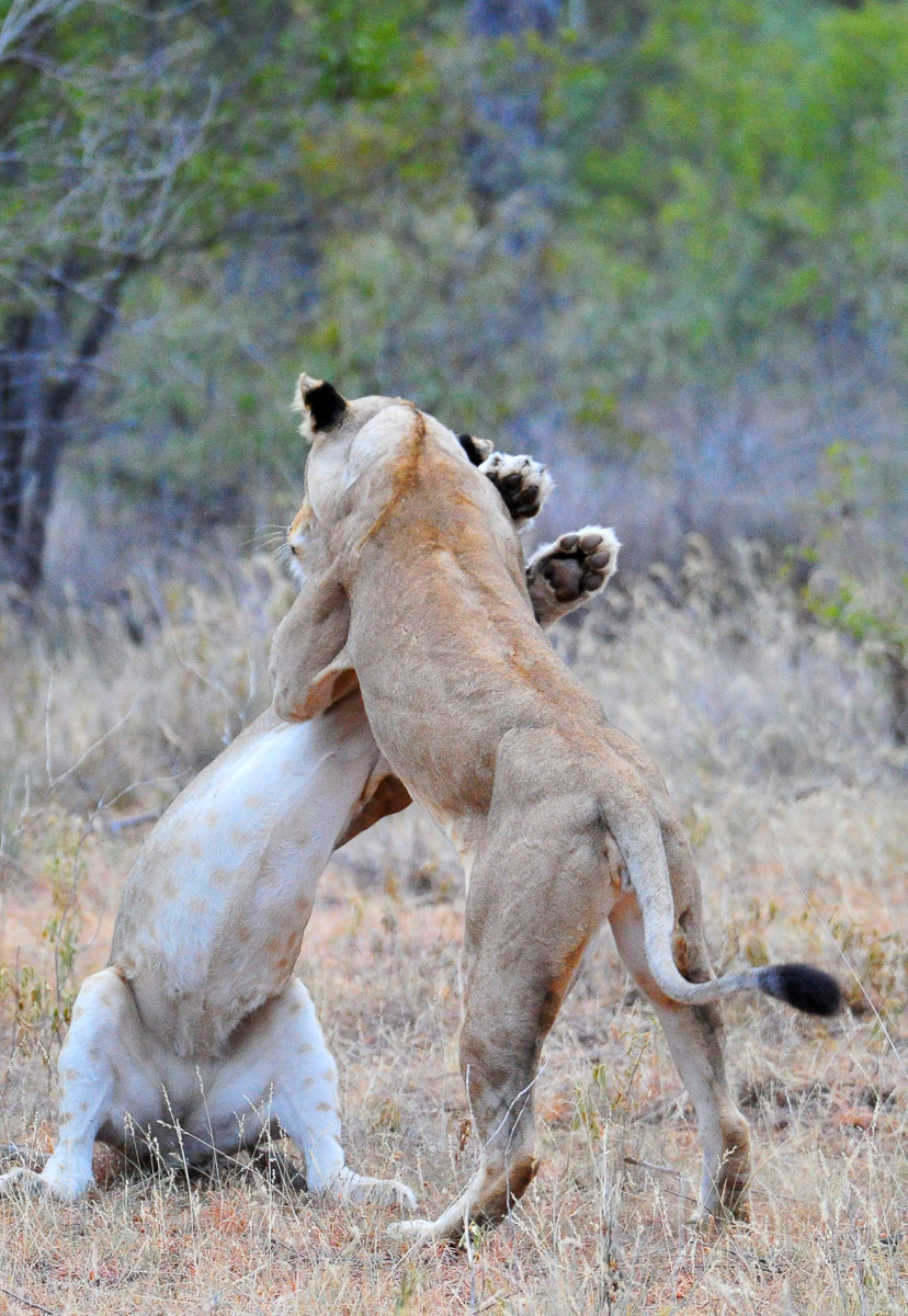 These lions went from stationary to jumping up at each other in two seconds - if our shutter speed was not set to at least 1 over the focal length, the image would have been blurred.The shutter speed is to blame for a lack of sharp images in 99% of the cases. A shutter speed that is too slow results in a blurred image.