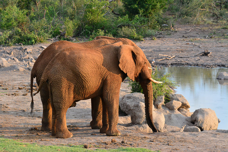Elephants at Tlou Dam: Nikon D800 with Tamron 150-600mm lens @ 150mm, handheld. f/6.3, ISO 2500, 1/800 sec