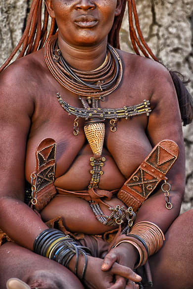 The jewelry worn by Himba women is made of shells and metals and the women in particular, wear plenty of it. For the most part, the modern world hasn't yet intruded on their traditional way of life which is why (ironically) more and more tourists are keen to visit authentic Himba villages.