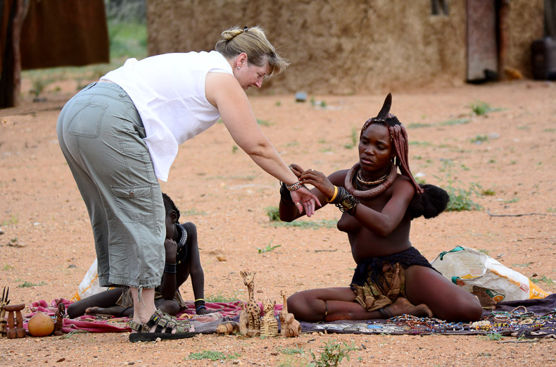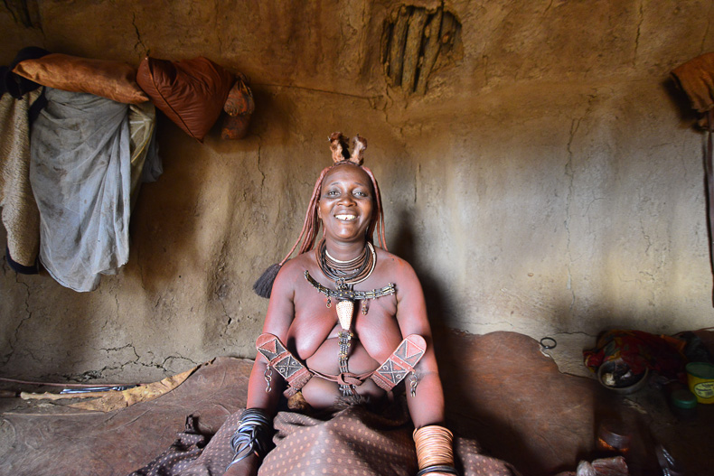 Himbas are a striking people to look at. The women are topless and wear mini-skirts made of goat skins adorned with shells and jewelry made of iron and copper.