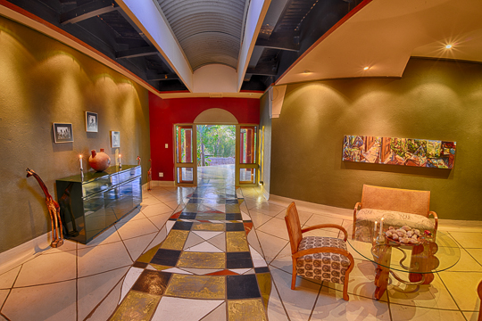 Four entrances lead to the lounge and dining area and the covered veranda.