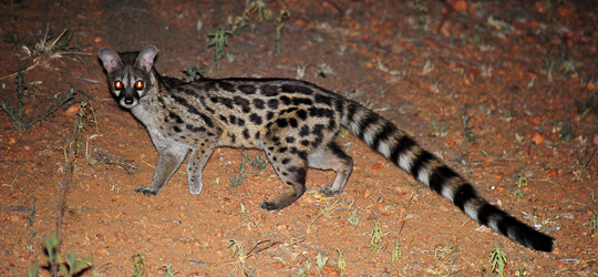At night we had impala, bushbuck and waterbuck coming to the waterhole to drink but the highlight for us was spotting this genet at the waterhole...