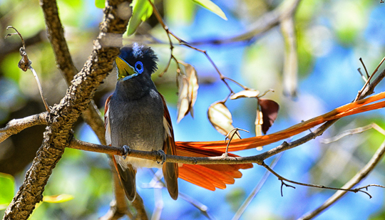 And if you don't feel like driving to the Kruger Park each day there is generally lots to photograph at the lodge. We heard this paradise flycatcher's alarm call...