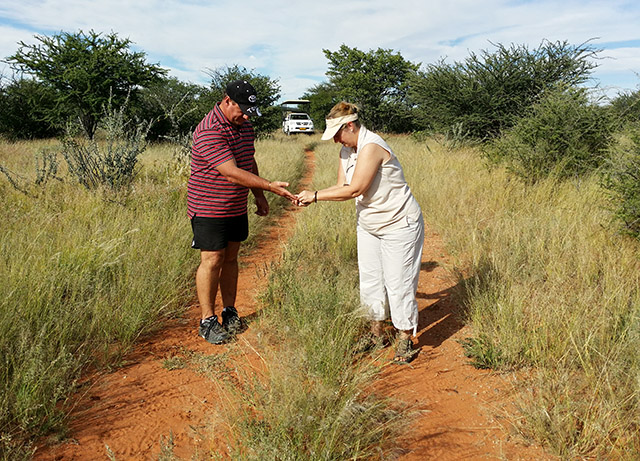 Nico then pointed out the time to her (nearly midnight) on the bar clock and reminded her that tomorrow they have to be up early to go into Etosha. It worked like a charm - she got up from the table and staggered to her room with some help from Nico!