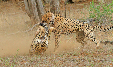 You don't get to see fighting cheetahs everyday so for the shot below I was out the gate at Lower Sabie at 04h30 and headed north. The drive was uneventful until just past Tshokwane when I saw a vehicle stopped up ahead. The driver said the cheetahs had been fighting but they were now just sitting. I decided to stick around, which was a good decision because 20 minutes later they were again fighting...!