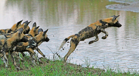 It depends on what you come across on the roads. For example, I was travelling down from Letaba Camp to Olifants and I was heading towards the low level bridge when I came across a pack of wild dogs. I sat with them for awhile and got the shot of the wild dog jumping.