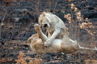 In addition to these controlled fires, lightning fires occur in the rainy season and parts of each park can be heavily burnt, as happened in the Pilanesberg in 2007 where over 50% of the park was burnt. Many people then decided not to visit the pilanesberg yet this is when you can see the animals clearly and get some good photographs, such as these lions...