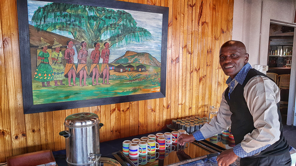 Each chalet has a tea and coffee station, electric blankets, an oil heater, King size bed, en suite bathroom and furnished with locally-made curtains and carpets that reflect the style and colors of the Batlokoa community.
