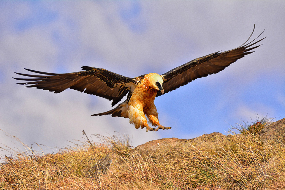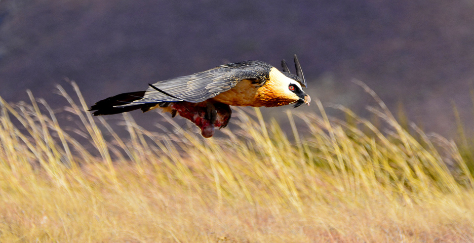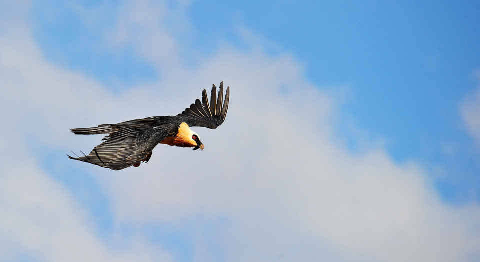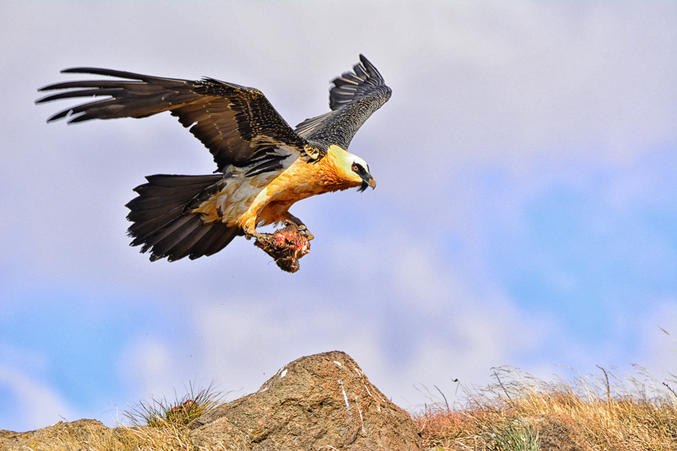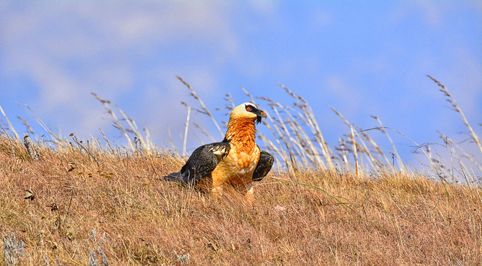 The bearded vulture is commonly known as the lammergeier, from the German for “lamb-hunter”. However, environmentalists rather encourage the use of the modern Bearded Vulture name because the ‘lamb-hunter’ name is both inaccurate and part of the reason for the demise of the birds.
