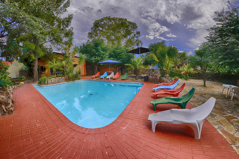 There is a sparkling swimming pool, which is always welcome for a cool down after a hot summer’s day in the Kalahari Desert.